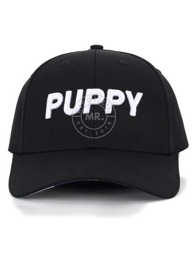 Schwarzes Cap mit weißem 3D-Stick PUPPY auf der Frontseite.