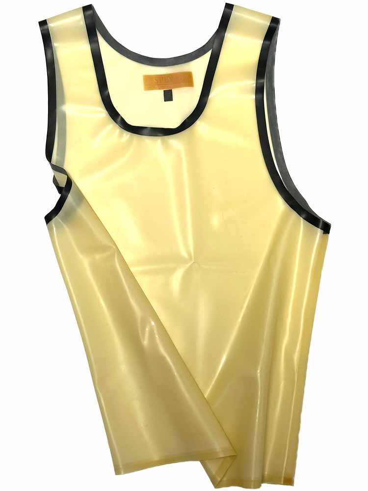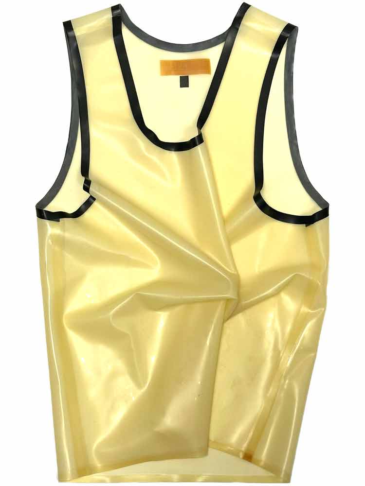 Wer gerne etwas Besonderes aus Gummi trägt und vielleicht sogar seine Tattoos zeigen will, der kommt an so einem Rubber-Tanktop nicht herum.
