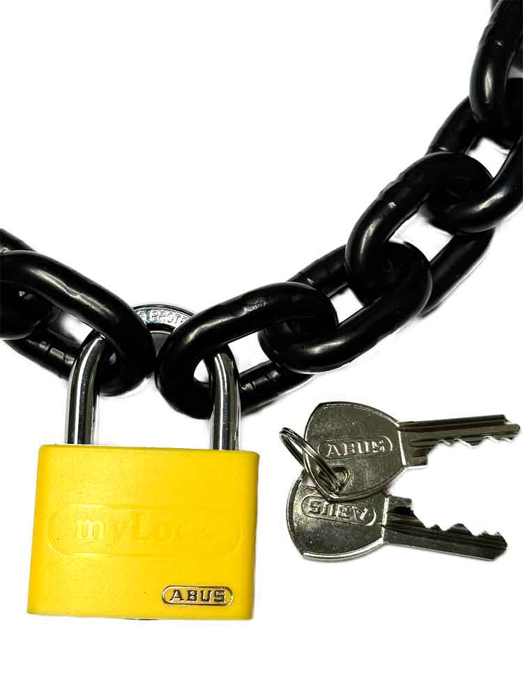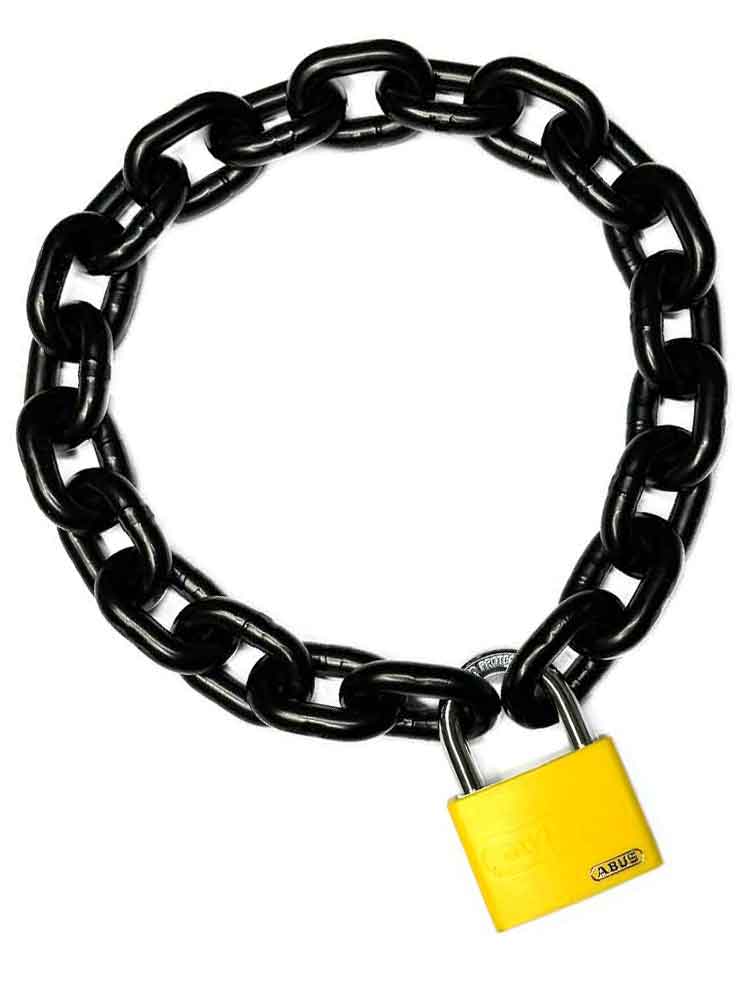 Stahlkette 8mm schwarz mit ABUS-Schloss gelb