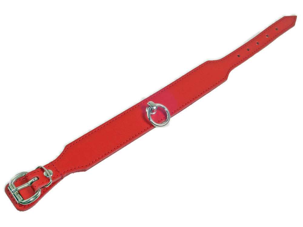 Schmales Leder-Halsband mit einem Ösenring, dem sog. Ring der O, auf der Vorderseite.