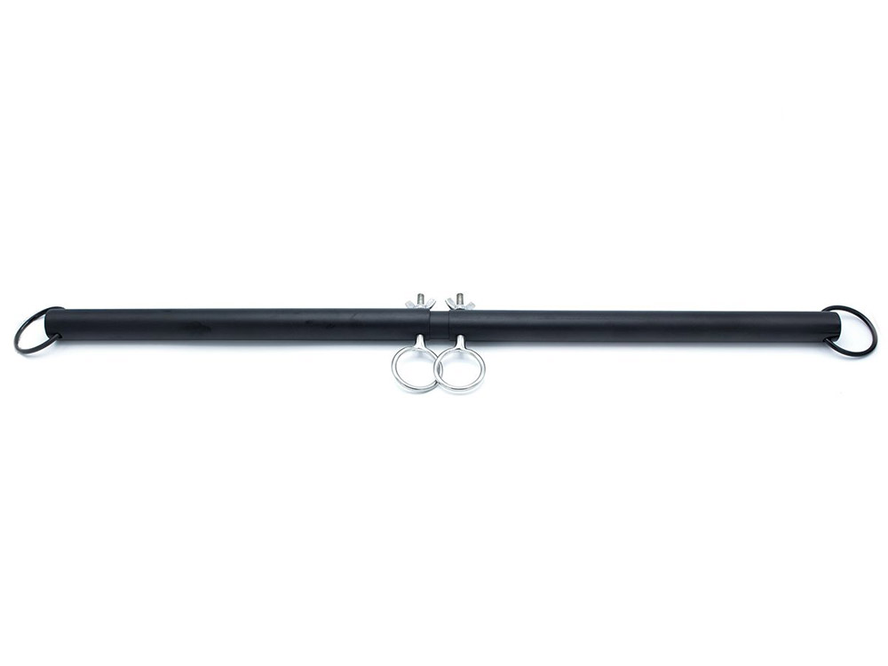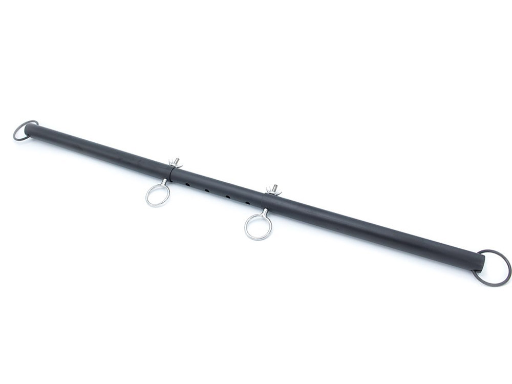 Eine aus schwarzem Metall gearbeitete Spreizstange für diverse erregende oder devote Bondagespiele.