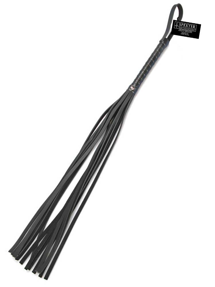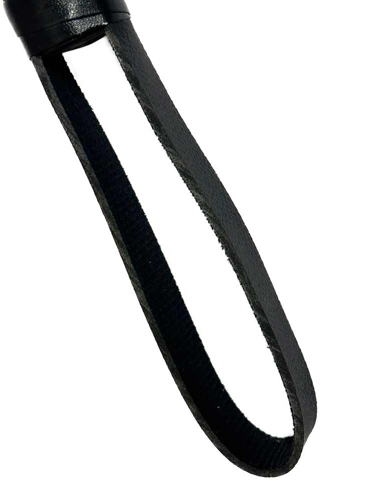 Zusätzlich einem gut zu haltenden Griff und einer Schlaufe, um den Flogger hängend aufzubewahren oder an einer Gürtelschlaufe zu befestigen und auf einer Party griffbereit zu haben.