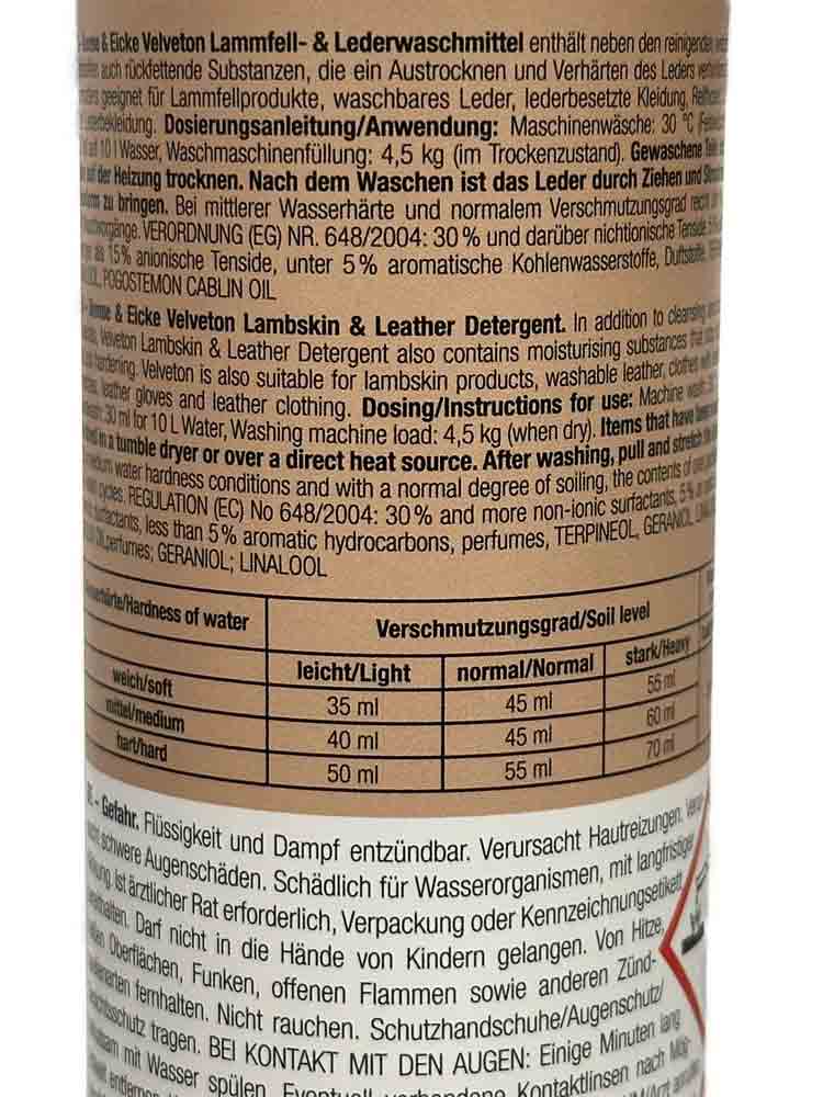 VELVETON Lederwaschmittel, das auch für die Lammfellwäsche geeignet ist.