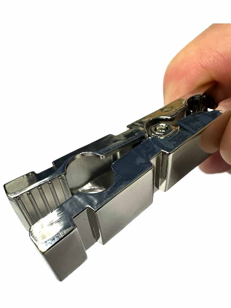 Die Auflageflächen der Klemmen bieten mehr Grip durch die vorhandenen Rillen – siehe Abbildung. Damit sorgen sie für mehr Halt und verhindern das Abrutschen der Klemmen.