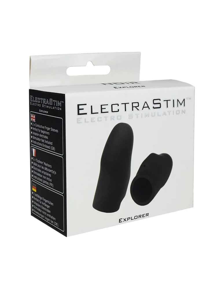 Die Explorer-Fingersleeves ergänzen die Silicone-Noir-Zubehörserie von Electrastim und sind unglaublich einfach zu verwendende Kappen/Hüllen, die über zwei Finger gestülpt werden, um dem Träger die Kraft der Elektrostimulation an den Fingerspitzen zu verleihen.